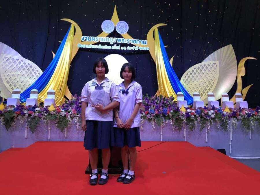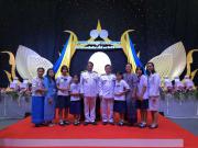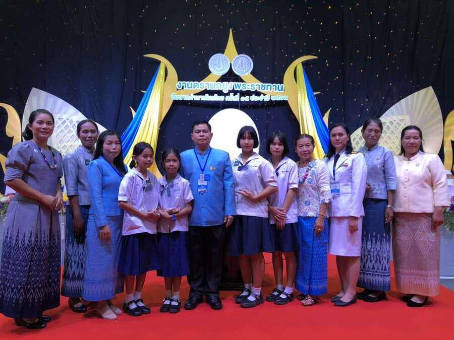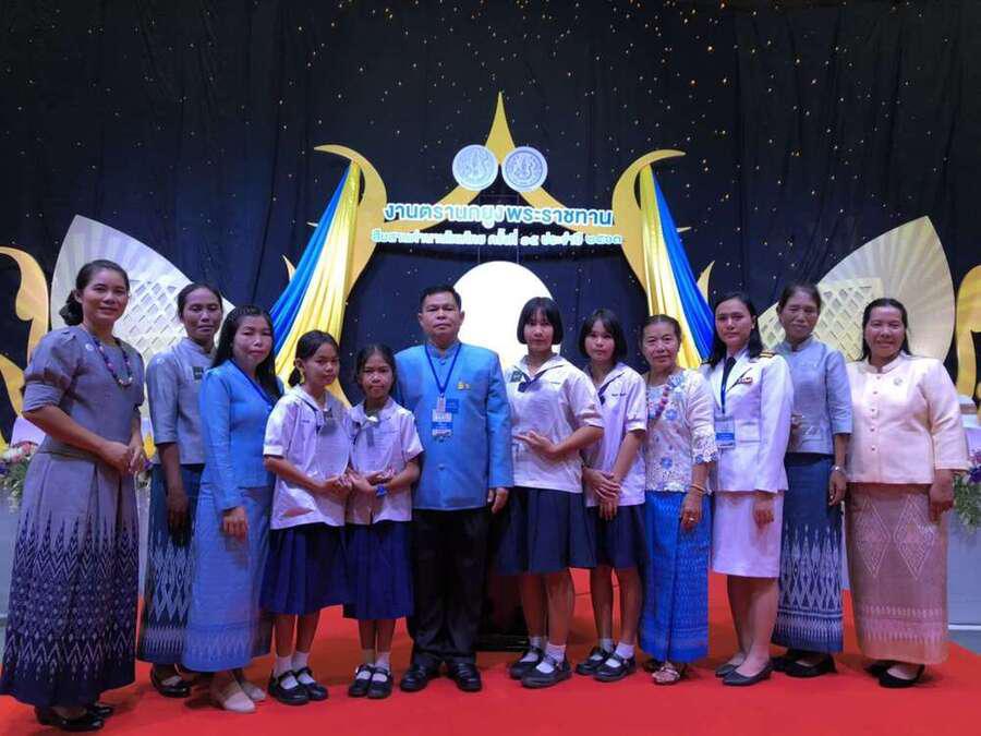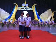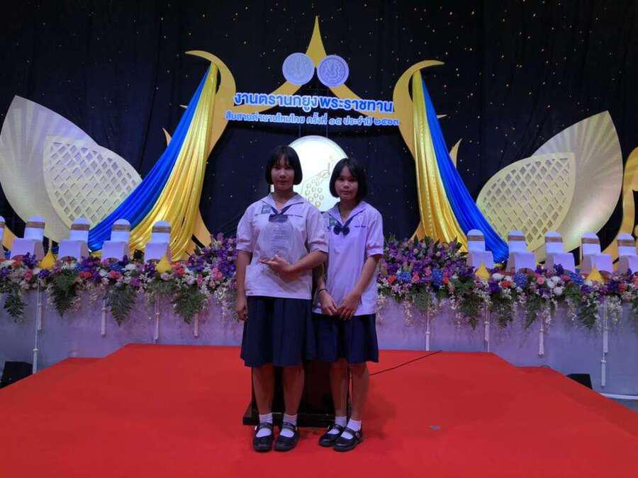 รับโล่รางวัล รางวัลรองชนะเลิศอันดับ 2 ในการประกวดเส้นไหม ประเภท เส้นไหมน้อยสาวมือ ระดับมัธยม