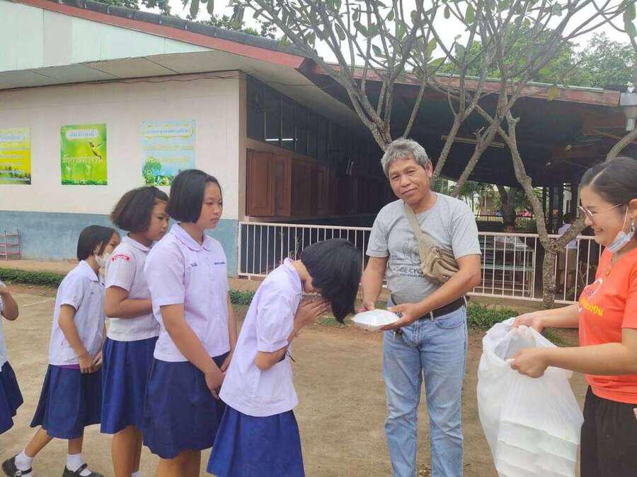 ศิษย์เก่าโรงเรียนบ้านหนองไผ่ มามอบอาหารกลางวัน(ข้าวมันไก่)ให้แก่นักรียนโรงเรียนบ้านหนองไผ่