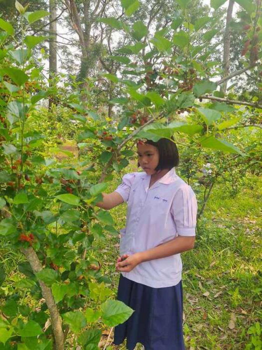 กิจกรรมเก็บหม่อนรับประทานผล โรงเรียนบ้านหนองไผ่ สพป.สน.1 ส่งโรงงานหลวงอาหารสำเร็จรูปที่ ๓ (เต่างอย) S:0