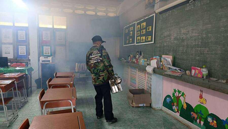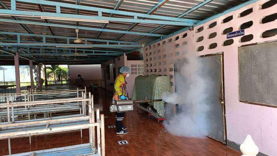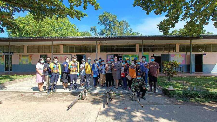โรงพยาบาลส่งเสริมสุขภาพตำบลบ้านหนองไผ่ เข้ากำจัดแหล่งเพาะพันธุ์ยุงลาย ในโรงเรียน