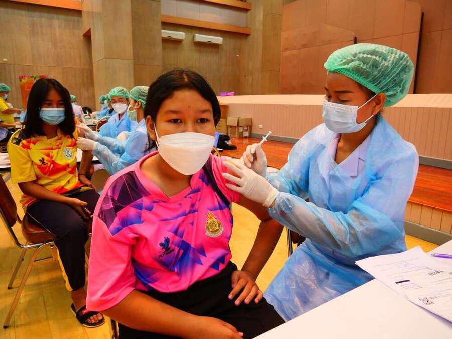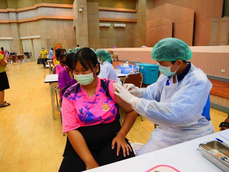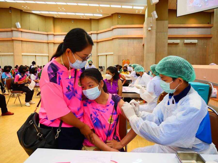 คณะครูโรงเรียนบ้านหนองไผ่ ดูแลนักเรียน เข้ารับการฉีดวัคซีนเข็มที่ 2